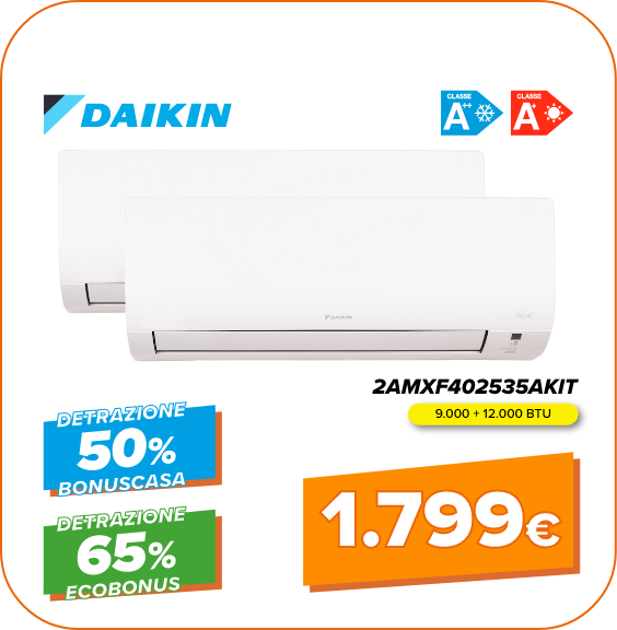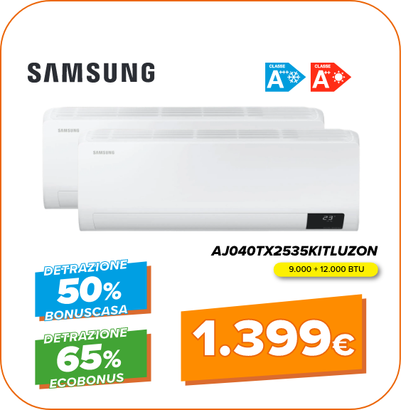 Le nostre offerte comprendono una vasta gamma di condizionatori, tra cui modelli mono e multi split, fissi e portatili, inverter, a pompa di calore e ecologici, tutti classificati con ogni tipo di Classe Energetica. Tra le marche disponibili, Daikin, Haier, Samsung, Mitsubishi, Panasonic, Comfee, Argo, Olimpia Splendid e Daitsu sono solo alcune delle opzioni tra cui scegliere. Non esitare a contattarci per ottenere maggiori informazioni, dove potrai trovare numerose offerte sui climatizzatori delle marche più note e affidabili in termini di prestazioni e assistenza al cliente, comprensive di consegna e installazione.